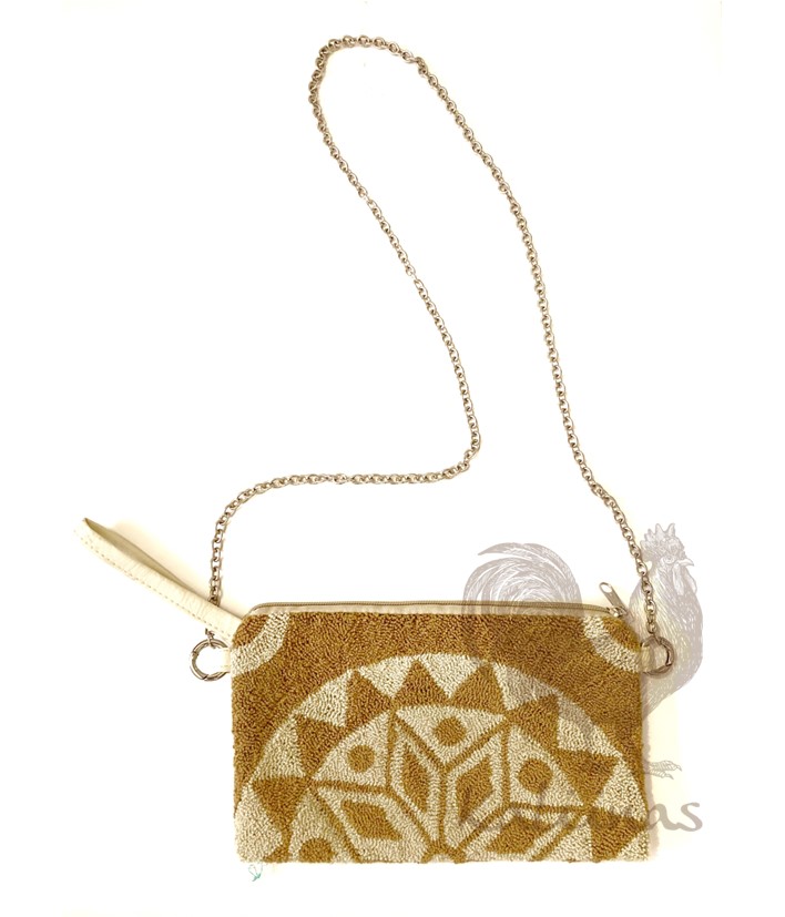 Bolso elaborado en técnica peyón en La Guajira. Se plasman figuras que en principio son mándalas y por esto es el nombre de este bolso. Ideal para usar cuando no queremos llevar muchas cosas.