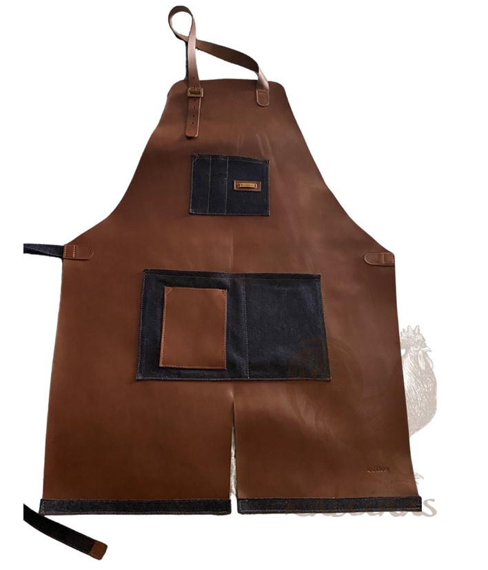 NOTA IMPORTANTE *Para tener tu Delantal, debes hacer una reserva, ya que se hace cada uno sobre pedido. Por lo que puedes escoger los bolsillos con el color que desees o si prefieres que sea completamente en cuero.
