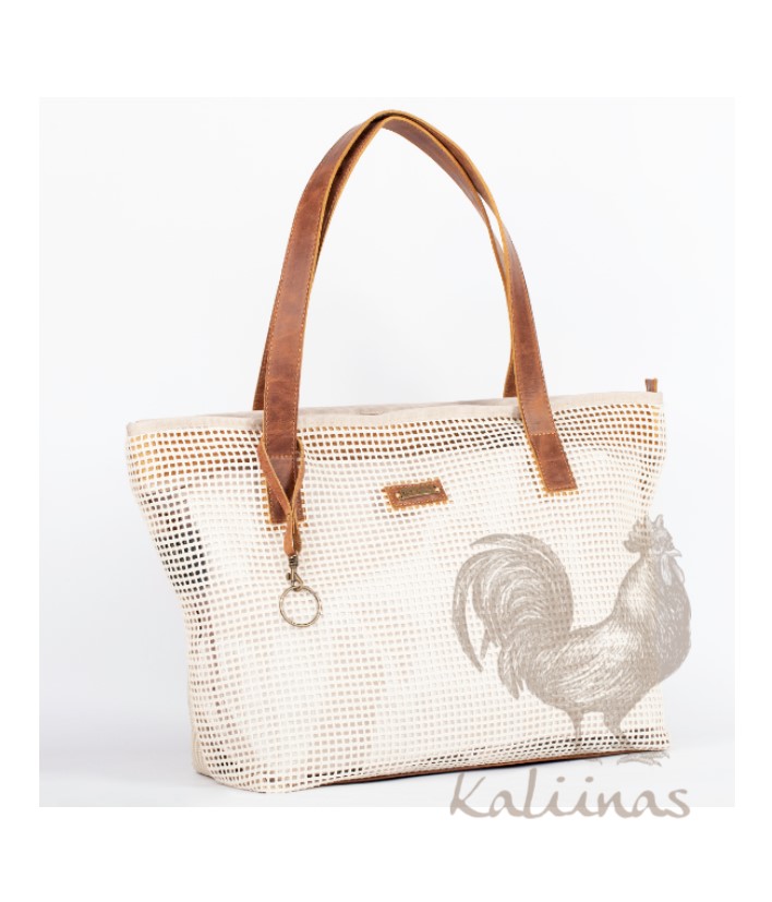 - Materiales: Lona malla color natural + Jute + Cuero miel